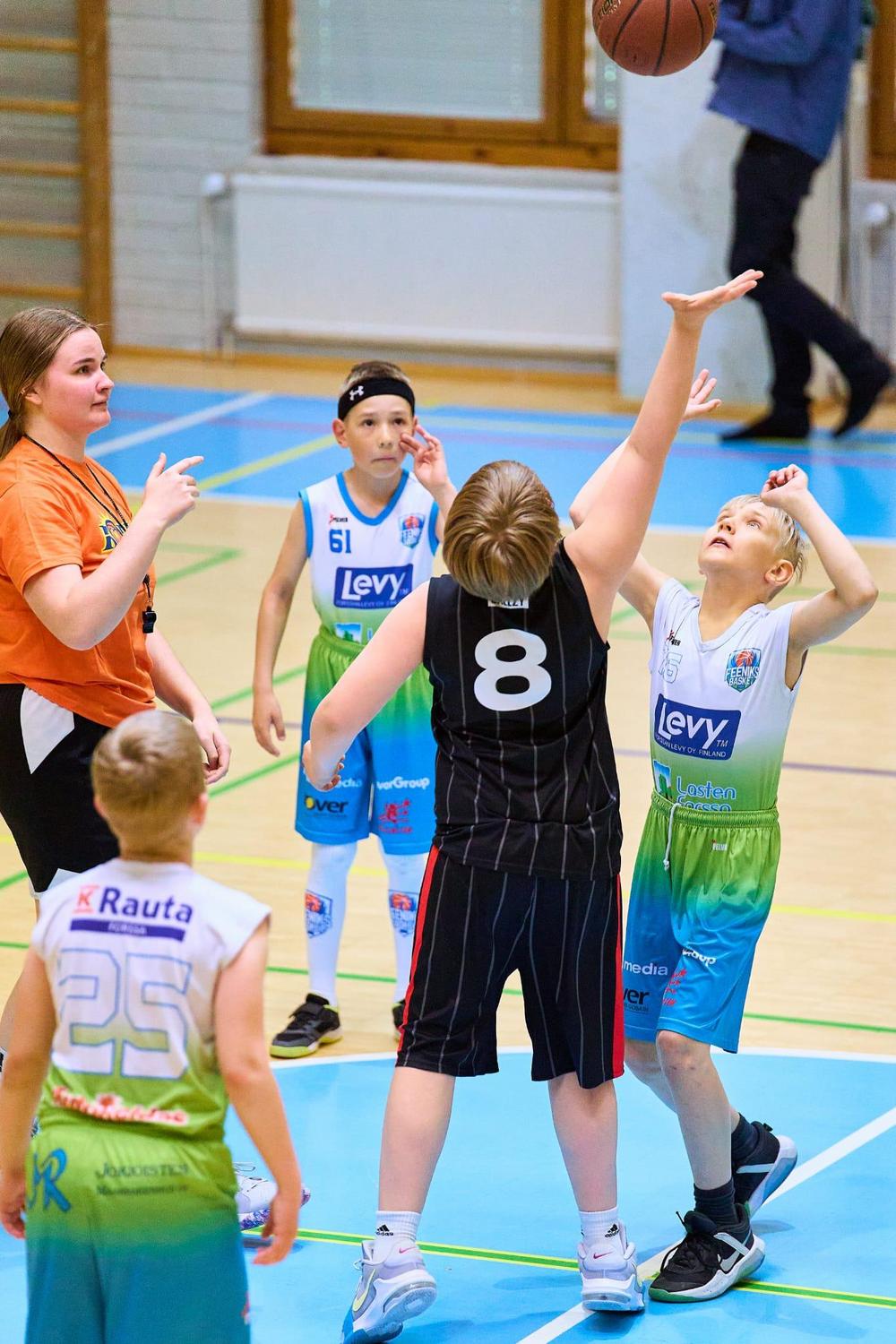 koriskouluikäisiä. Samaan hengenvetoon täytyy todeta, että nuorista ikäluokista huolimatta turnauksessa