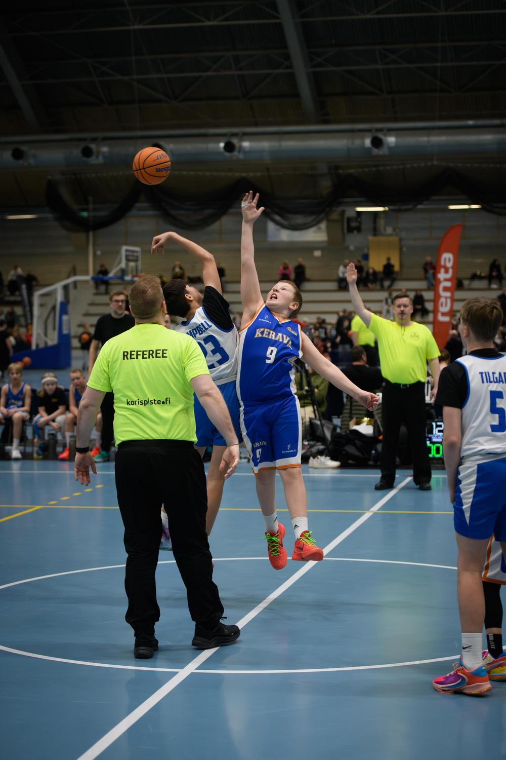 Välieräottelussa vääntö oli tiukkaa. Peliaika U12-otteluissa tässä turnauksessa oli 2x12min, ja ensimmäisen puolikkaan jälkeen tilanne oli 18–25. Toisen jakson puolivälissä Keravan tinkimätön puolustus alkoi kantaa hedelmää. Ottelun kulminaatiopiste oli Eetu Mannisen puolustuspään uhrautuva ns. roskapallon voitto tilanteessa 30–38. Tämän jälkeen ottelun viimeiset kuusi minuuttia menivät Keravalle 15–0, lopputulos 30–53 ja finaalipaikka oli tosiasia.